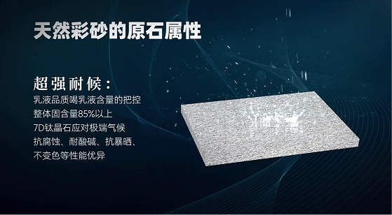 技術(shù)亮點(diǎn):通過“聚砂成石”技術(shù),將天然彩砂按特定粒徑配比與鈦晶助劑結(jié)合,形成天然石材的通透性與抗污性,耐磨系數(shù)達(dá)6.5-7H,遠(yuǎn)超普通仿石漆。